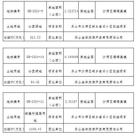 乐山市沙湾区自然资源局国有土地划拨用地批前公示