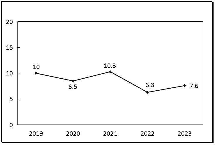 图7 2019-2023年农村居民人均可支配收入增长速度