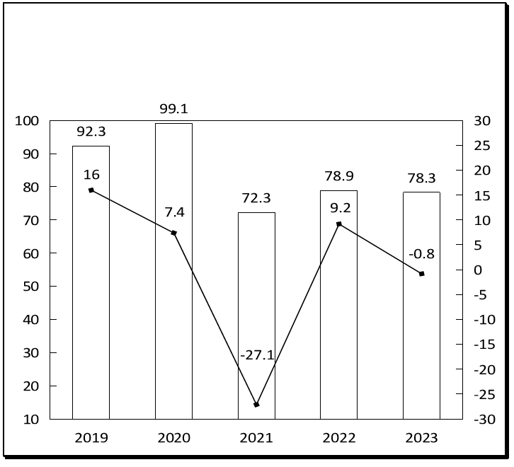 图1 2019-2023年规模以上工业增加值增长速度