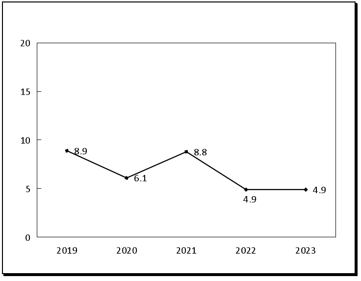 图6 2019-2023年城镇居民人均可支配收入增长速度